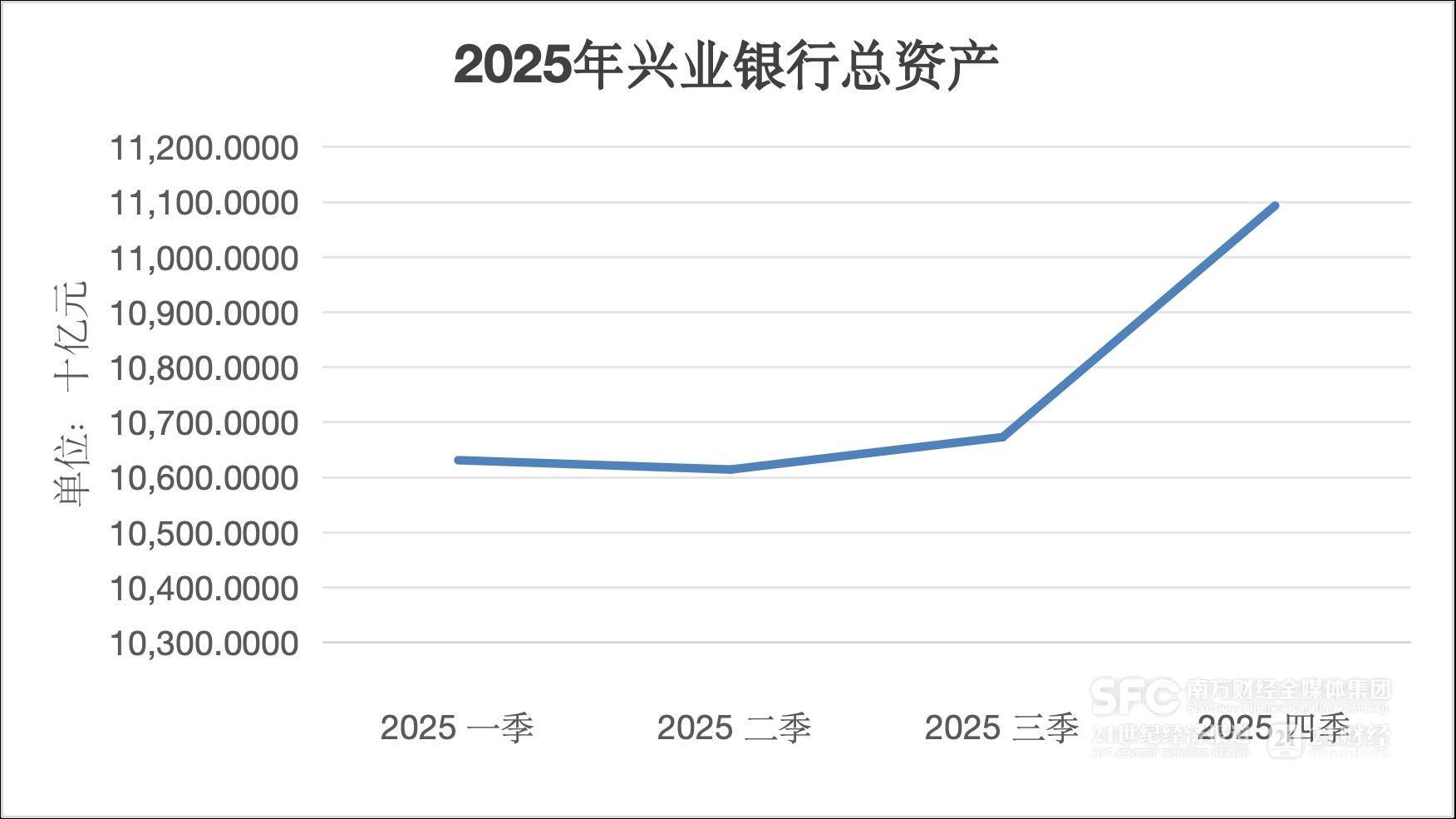 其中,2025年第四季度,该行总资产环比增加约4204.14亿元,单季度资产规模增量、增幅均为全年最高。